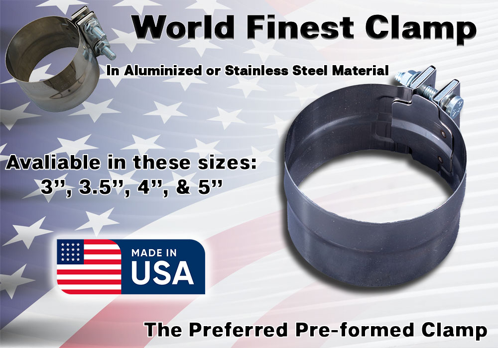 Preformed exhaust clamp with reversible hardware and lap joint technology!